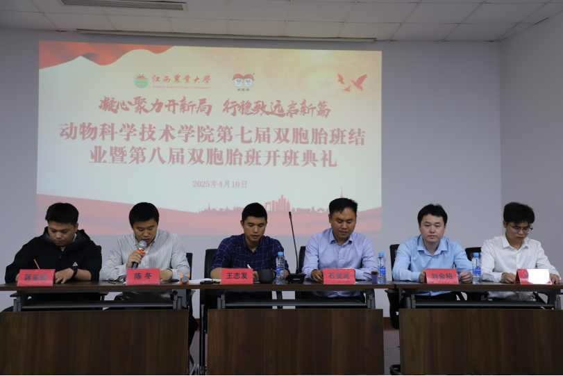 为深入落实产教融合战略,持续巩固校企合作育人成果,2025年4月10日,江西农业大学动物科学技术学院第七届“双胞胎班”结业暨第八届“双胞胎班”开班仪式在动科院院办201报告厅举行,会议由院学工办陈冬老师。