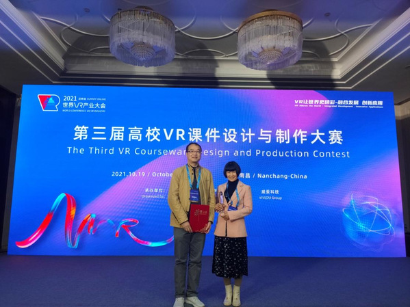 据悉,本届高校VR课件设计与制作大赛属于2021世界VR产业大会系列活动之一,共吸引228个团队报名参赛,涵盖52所高校,其中包含5所外省高校。经过权威专家评审,最终35个团队进入决赛,现场展示VR课件并讲解课件作品亮点。