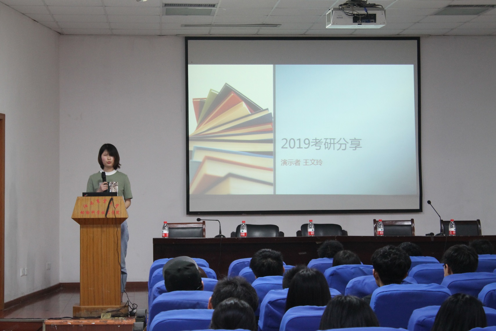会上,胡院长分别从提升学历的重要性、我院学生的考研优势和今年的考研新形势进行了详细的分析。他指出,随着社会的进步与时代的发展,更高的学历能够获得更多的就业机会,我院雄厚的师资力量,优良的学风,对同学的考研深造有积极的推动作用。同时,他希望新一届毕业生能明确考研目的和考研形势,合理定位并尽早做出考研计划,为明年的成功升学做好充分的准备。