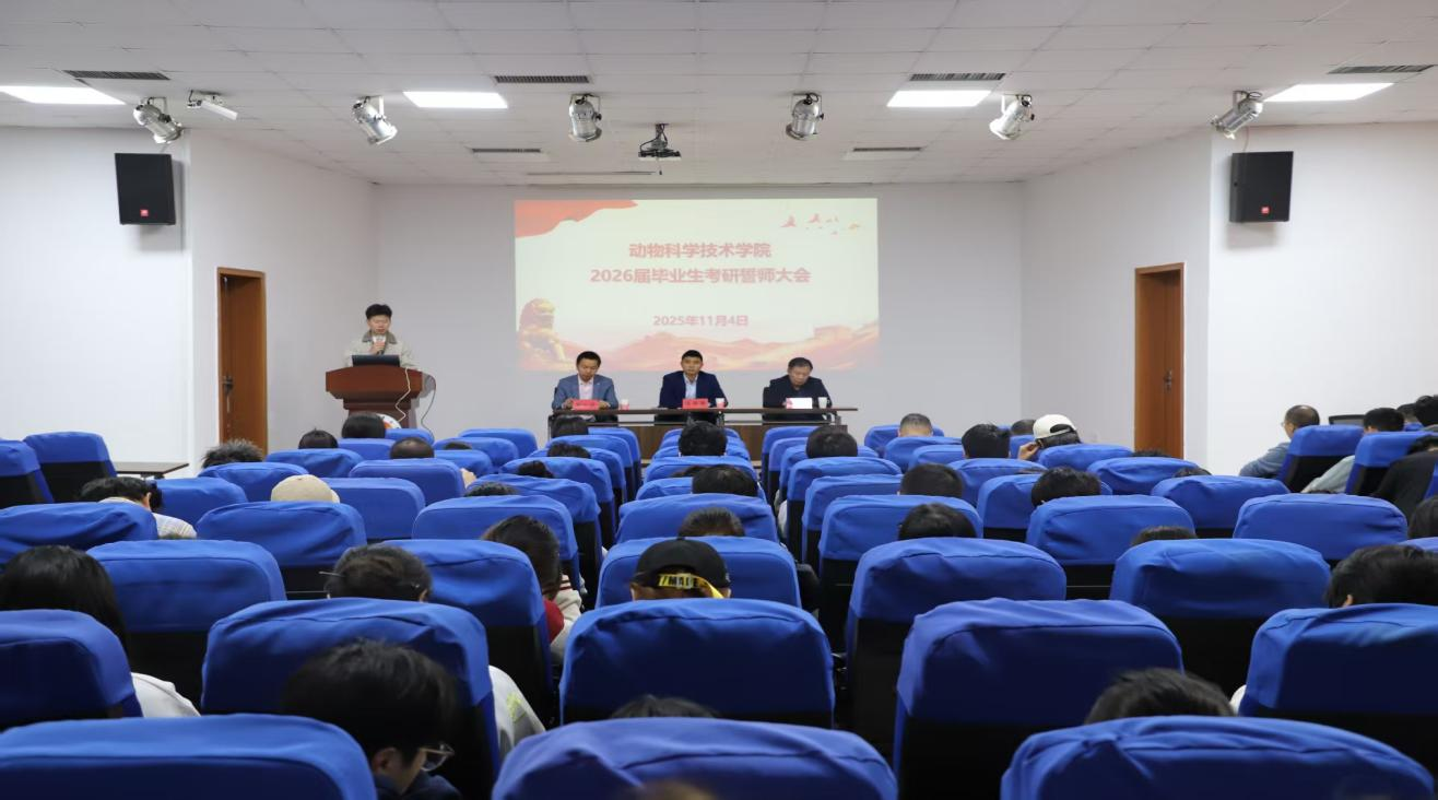 为进一步坚定考研学子备考信心、凝聚奋进力量,引导青年学子将个人理想融入国家畜牧行业发展大局,11月4日下午,我院于院办201报告厅举行2026届考研誓师大会。院党委书记王志发、院长郭小权出席会议,2026届毕业班班主任、全体辅导员及全体考研学子参会,副院长吴小波主持会议。