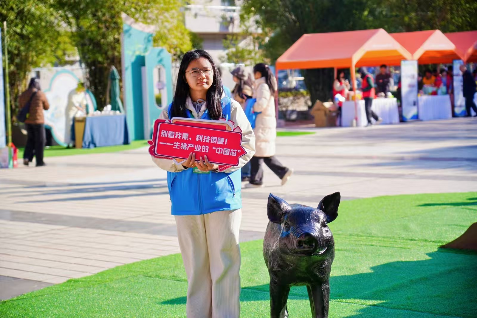 在“青春π对,科创未来”科技文化节上,学院展区成为亮点。蜜蛋联创工坊的互动实验、“山下长黑”华系猪的品鉴体验,将深奥的专业知识转化为生动有趣的实践,充分展现了学院在“产学研用”深度融合上的扎实成效与学生“学农爱农、强农兴农”的青春担当。