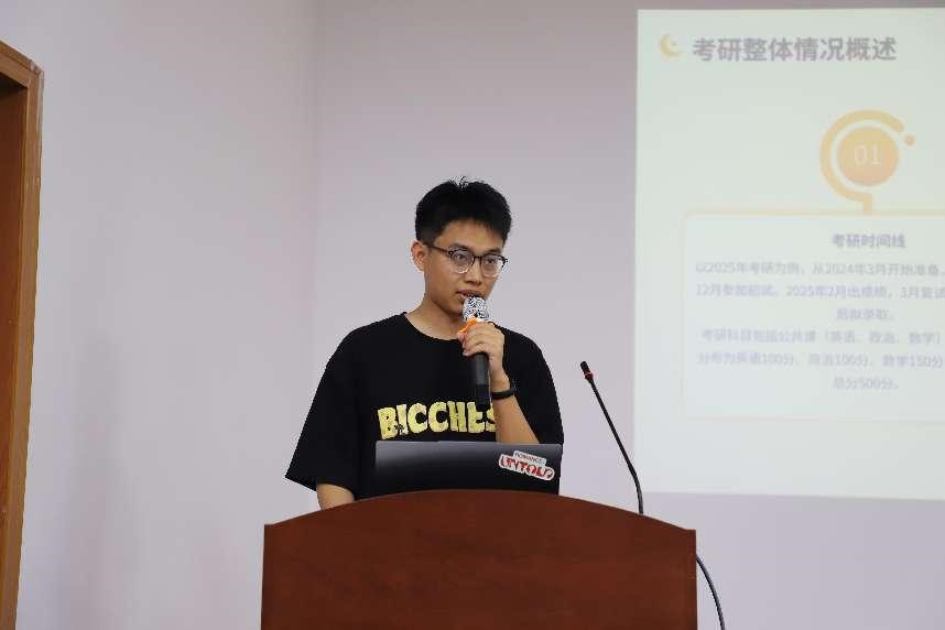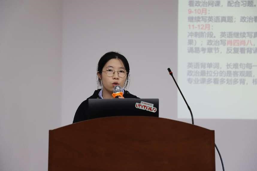 在随后的经验分享环节,肖蕾以“时间管理与资源整合”为主题,详细介绍了如何平衡课程学习与备考复习,并推荐了考研复习的工具与平台。“考研是一场信息战,”她建议学弟学妹“善用院校官网、与导师资源,主动搜索考研复习资料”。