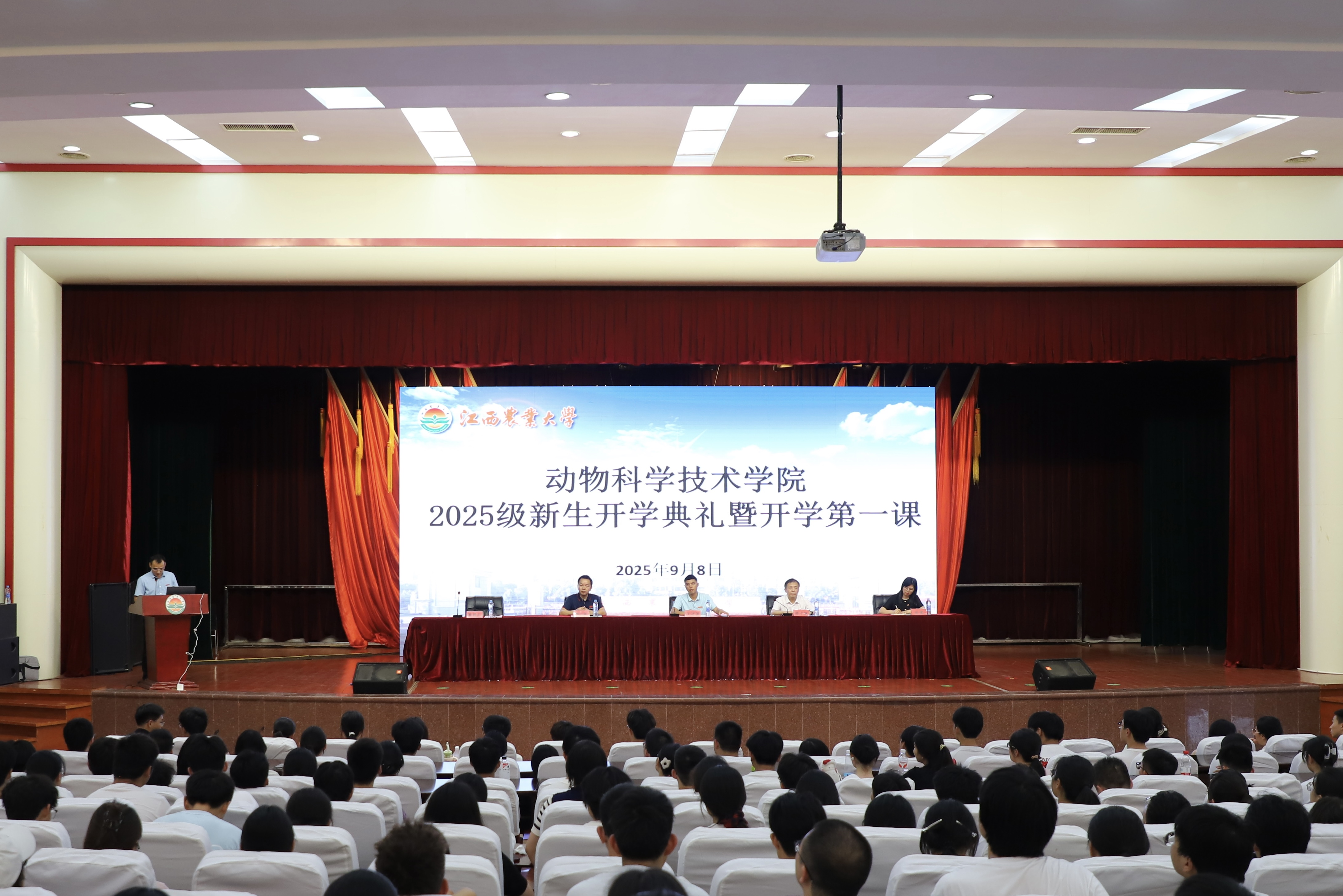 9月8日,动物科学技术学院2025级新生开学典礼暨开学第一课在逸夫报告厅举行。学院领导班子成员、新生班班主任、教师代表与2025级全体新生欢聚一堂,共同见证新一届学子开启人生新征程的重要时刻。典礼由学院党委委员、现代畜牧产业副院长黎观红主持。