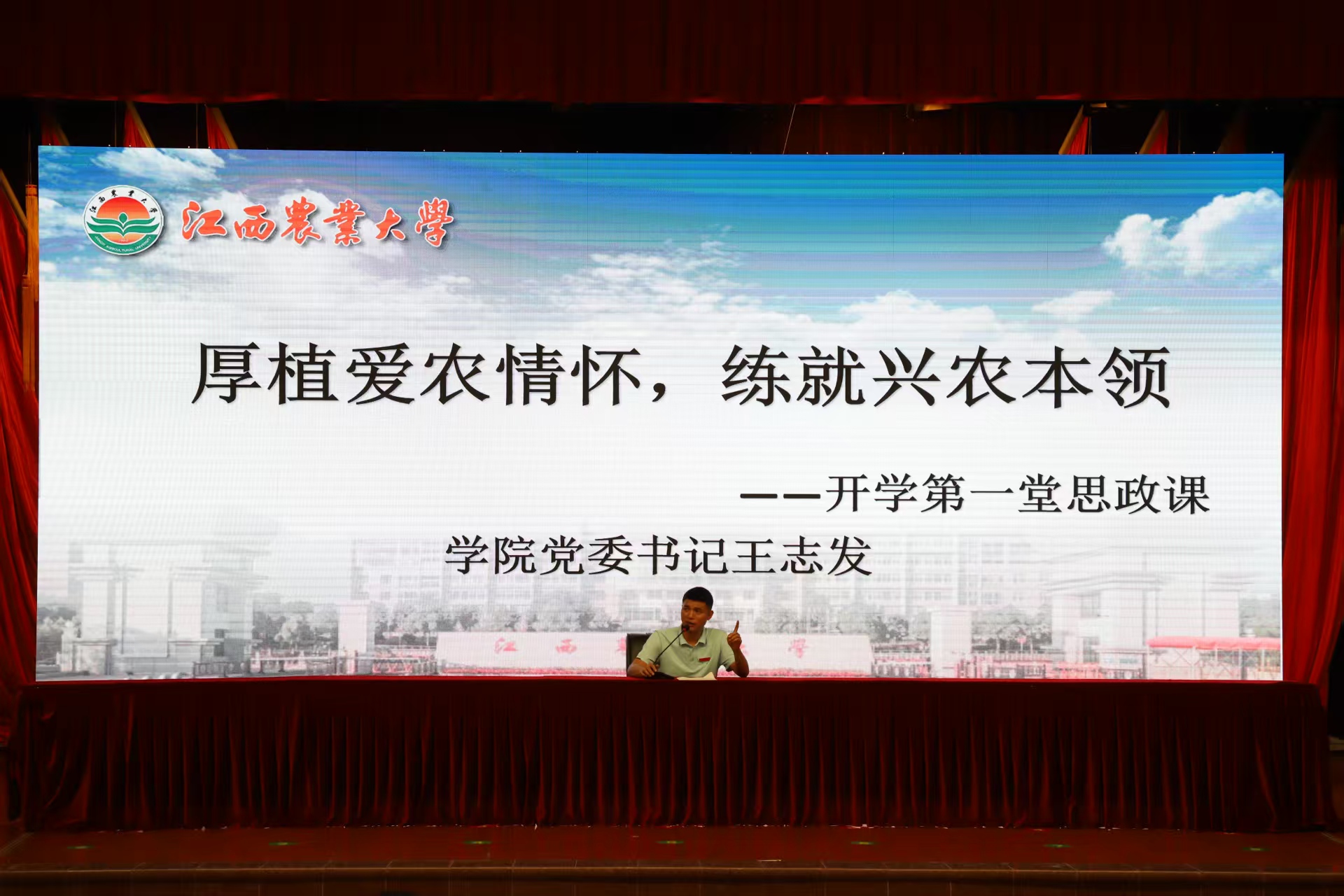 厚植情怀明方向,锤炼本领践初心。学院党委书记王志发以“厚植爱农情怀,练就兴农本领”为主题,为全体新生讲授开学第一堂思政课,引导学生深刻理解强农兴农的时代责任,希望同学们把‘爱农’刻进骨子里,把‘兴农’融入行动中,在学习中锤炼过硬专业本领,在实践中践行初心使命,以青春之我、奋斗之我,为中国式现代化建设贡献农业智慧与力量!